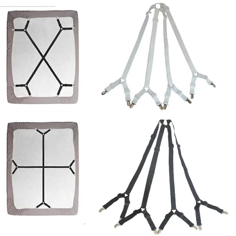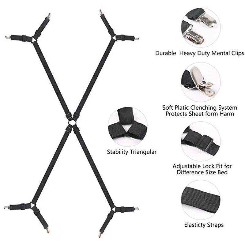 1 Set Adjustable Bed Suspenders Sheet Fastener Straps Clippers Clips Holder Kit Gripper Fitted Crisscross Bed Sheet Holder