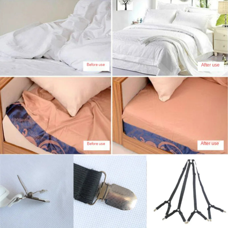 Save Your Time: This bed suspenders combined by four straps on a steady circle. The suspenders made of elastic straps, sturdy mental clips and adjustable locks. Easy to put on and always keep the bed sheet in a position. It will save your time to fixing your bed sheet.