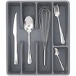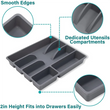 [Versatility Holder]Cutlery organizer in drawer is essential for controlling clutter and keeping your space beautifully organized. Perfect for the kitchen, but also suitable for kitchen, office, bathroom, toiletries, beauty.Store desk office supplies, crafting materials, /gadget accessories, etc. Also, the simple grey color allow it to with any room decoration, so that the silverware tray could also be used for storing your eye palettes, bronzer, powder or lipsticks, etc. Color: Gray