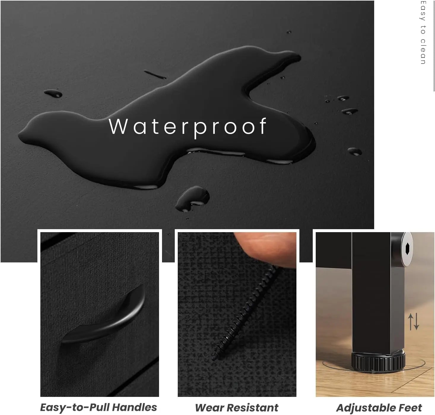 Durable Material: This tall dresser is made of cationic materials, all other sides and gaps are made of high-quality breathable and non-woven synthetic fiber, harmless and wear-resistant, suitable for kids, teens and adults. Easy-pull drawers for smooth sliding and closing. For easy cleaning, just wipe with damp cloth and get it air-dried.